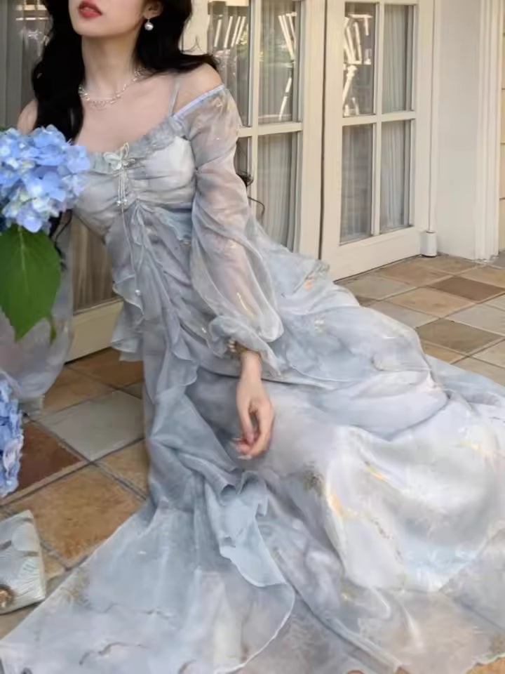 Les manches flare avec volants ajoutent une touche féerique et féminine, apportant mouvement et charme à la silhouette.