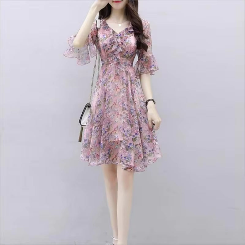Elegant Summer Dress with Lace and Floral Pattern The Jielur elegant summer dress combines French...