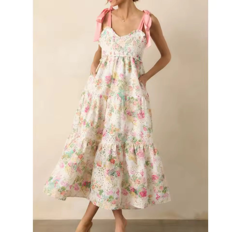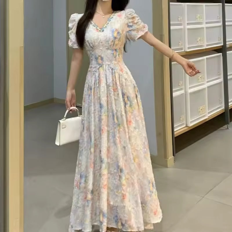 Süßer und Femininer Look Das florale Maxikleid im französischen Stil verleiht einen romantischen und eleganten...