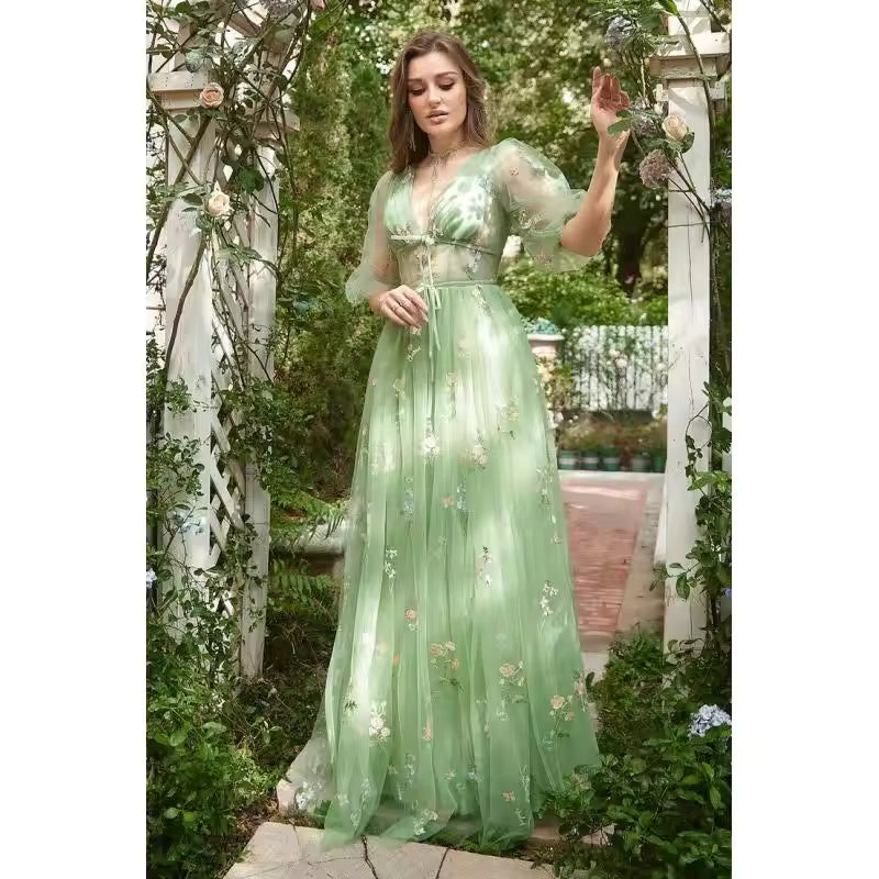Élégance Féérique Cette robe de soirée verte au style féerique apporte charme et raffinement pour...