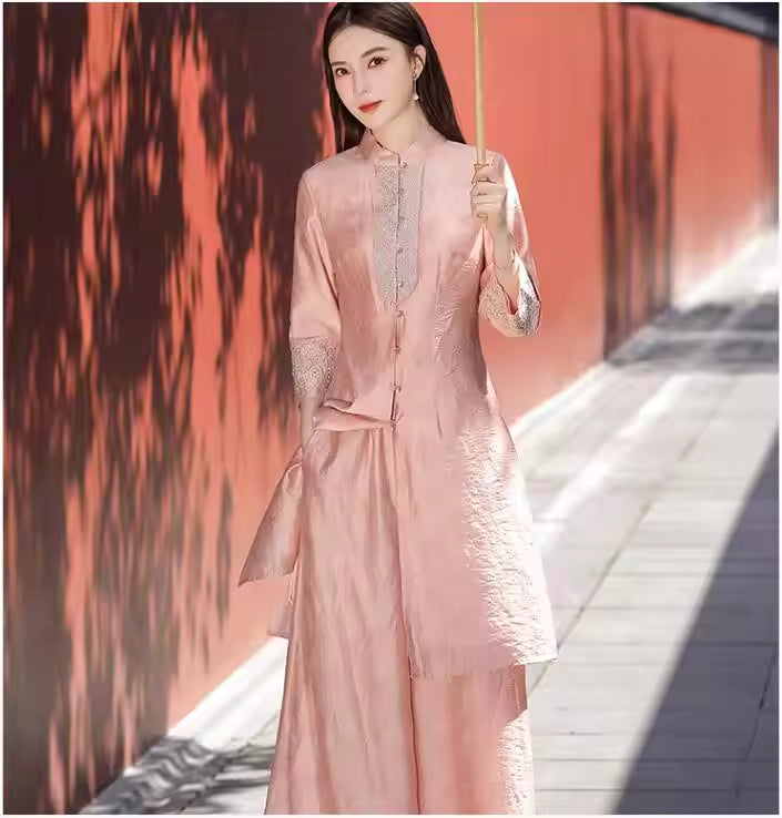 Eleganza Estiva d’Ispirazione Tradizionale Il completo estivo stile Tang per donna unisce l’estetica etnica cinese...
