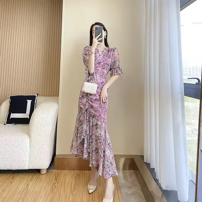 Style Rétro Chic Nouvelle Collection 2024 La robe violette imprimée pour femme 2024 séduit par...